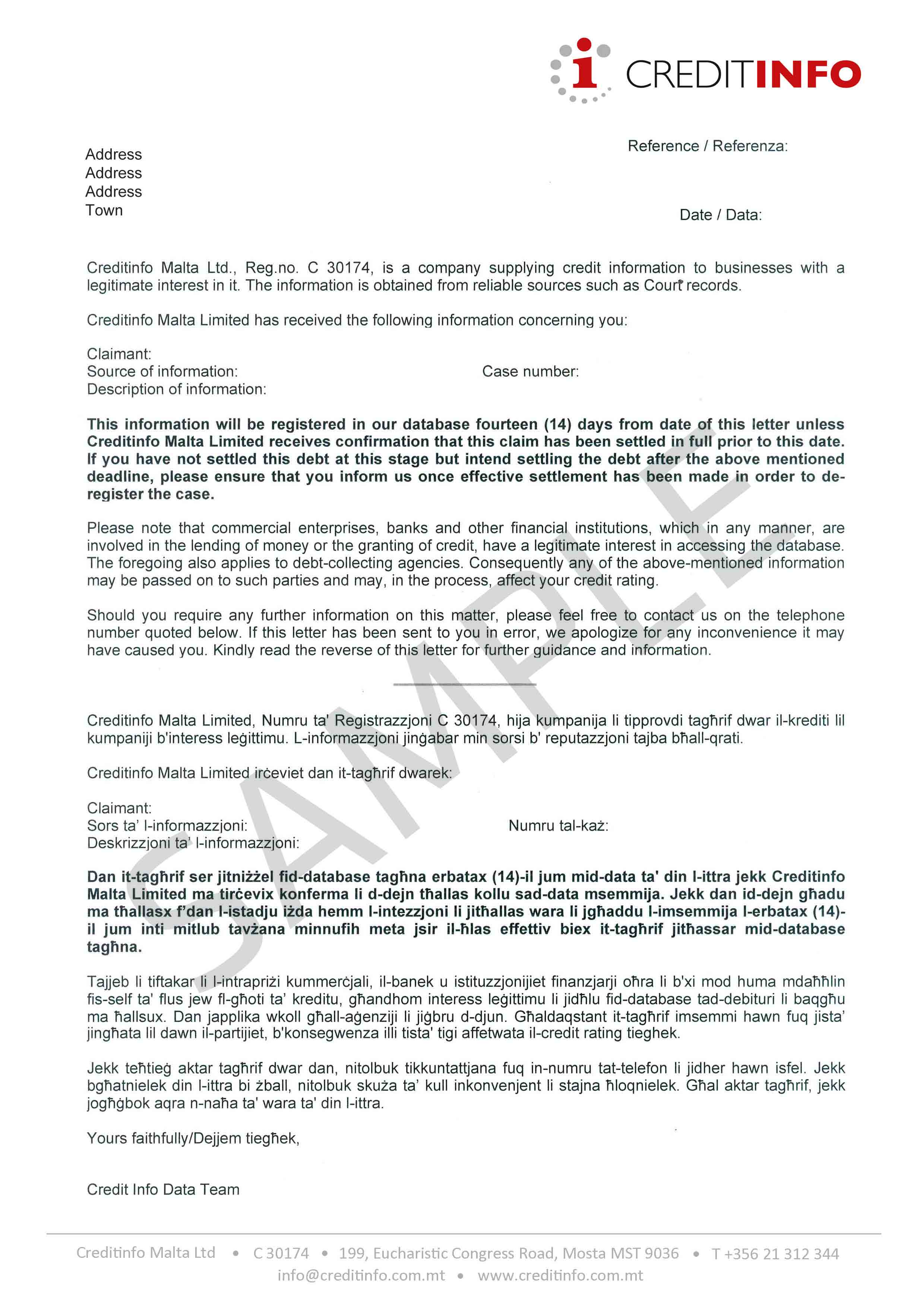 Our notification letters are considered as very effective alternative means of collecting money owed to you, or last resort before taking legal action towards late payers or defaulting debtors.